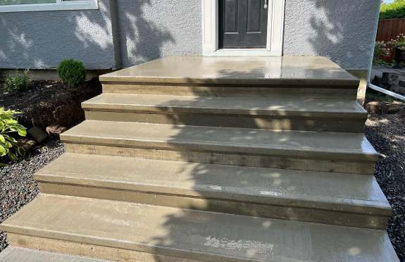 A standard set of stairs typically takes 2 to 4 days. This includes the form-work, placing the reinforcement steel, and the final pour. Because stairs require precision curing, we carefully monitor the drying process before the forms are removed to ensure a flawless, sharp edge.